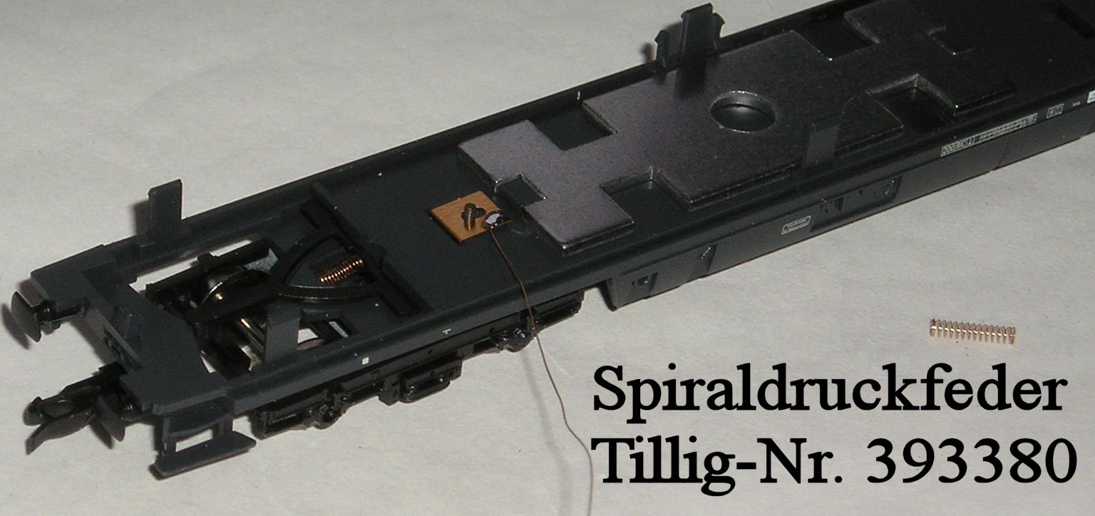 ![]() Die Stromzuführung ist ab Werk für die Digitalvariante nicht auchsreichend. Ich hab´s erst so probiert, wie es vom Hersteller gedacht war. Aber eine wirklich zuverlässige Stromzuführung wird auf Dauer nur durch eine ordentliche Kabelverbindung über dünne Dekoderlitze von den Lagerblechen der Drehgestelle bis zur Leiterplatte hergestellt. Besser ist es gleich auf 4-Punkt-Stromaufnahme (pro Drehgestell) (vergl. Kuehn-Wagen) umzurüsten. Mittig isolierte Achsen sind von der Fa. Mod-Müller lieferbar. Vorsicht, die Federn fliegen sehr gut. (Das Bild ist nur noch wegen der Ersatzteilnr. der Feder hier.) Und wenn Sie schon beim Umbau sind, schadet etwas Farbe im Innenraum auch nicht. ![]() Keine Angst, die Streifen der Plüschbezüge sind ausgedruckt und aufgeklebt. Sitze zum ausdrucken Abteilsitze zum ausdrucken Falls Sie die Analog-Beleuchtung abschaltbar machen wollen, können Sie an geeigneter Stelle im Wagenboden einen kleinen Stecker mit Jumper (Einzelteile E0050) einbauen. Optionen: Auf jeder längeren Lichtleiterplatte ist eine unabhängige 2. Elektronik für Schlusslichter bestückbar. Die Helligkeit ist getrennt von der Innenbeleuchtung einstellbar und konstant. Betrieb nur bei Vorwärtsfahrt. Nachleuchtdauer ca. 5 Minuten. (B 0303 Aufpreis 9,00 € inkl. Goldcap) In der Digitalausführung können die LEDs direkt an dafür vorgesehene Pads angeschlossen werden. Alternativ können über die beiden zusätzlichen Dekoderausgänge einzelne Abteile getrennt abschaltbar gemacht werden. (Eine neben der Hauptleiterplatte einbaubare passive "Seitengangleiterplatte" ist in Vorbereitung, wird aber erst bei entsprechender Nachfrage produziert.) links ist die Analogleiterplatte abgebildet Geben Sie bitte bei der Bestellung an, ob der Wagen getönte scheiben hat. Lieferumfang: - 1 Beleuchtungsleiterplatte (geprüft und voreingestellt) Bezug und Information: - Bestellung auf www.MoBa-Licht.de m= 5,5 g/ 4 g Falls Sie die Beleuchtung nicht selbst einbauen wollen oder können, den Kompletteinbau übernehme ich auch. Lassen Sie sich ein Angebot erstellen. |
