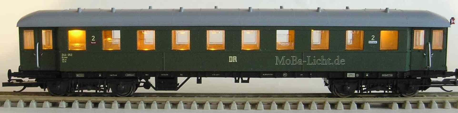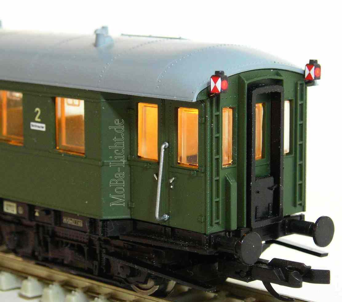 Wageninnenbeleuchtung für einen Eilzugwagen (Fa. Tillig M 1:120)Lichtfarbe Goldenweiß, technische Daten: klick obenFür diese Wagen früherer Epochen passen die gleichen Beleuchtungssätze (lediglich die Klasse ist um 1 höher), auch für die Karwendel-Expesswagen, alte oder neue Ausführung. Für die Formneuheit 2019 A4ü - 1.Kl (auch Rheingold-Wagen) wurde die LED-Bestückung angepasst.. Für die Eilzugwagen der ÖBB passen die Nr. 2612( -___6) und 2622( -___6).