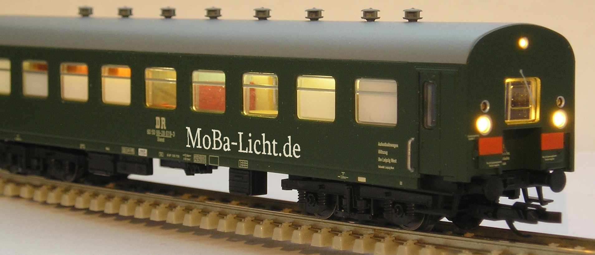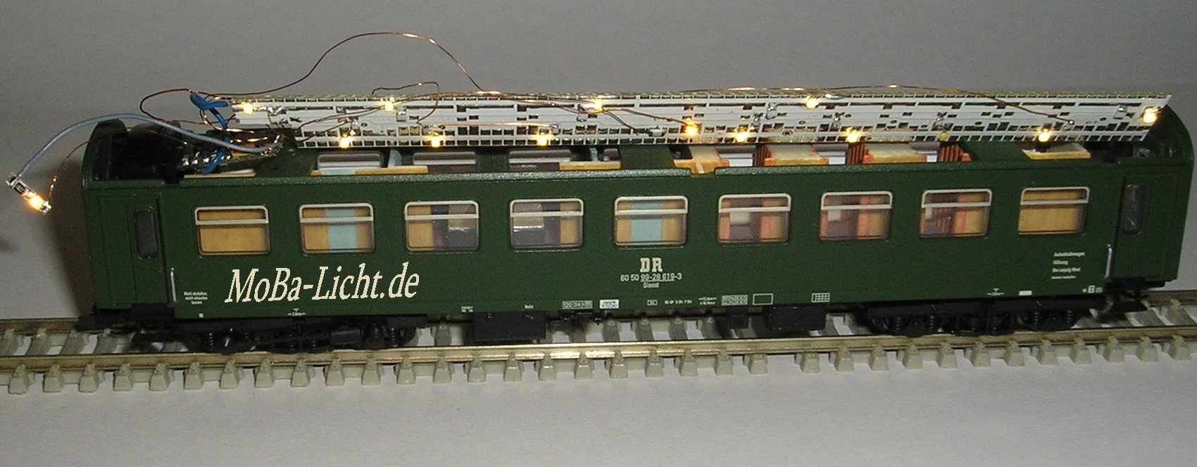 Wageninnenbeleuchtung Hilfszug/ Mannschaftswagen Fa.TilligLichtfarbe der Abbildung ist: 3er Spitzenlicht super golden white und Innenbeleuchtung warmweiß, Chefzimmer super golden whitedie Gang-LEDs warmweiß weitere Daten und Einbau: klick oben