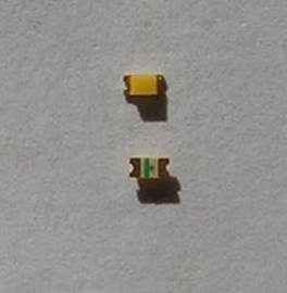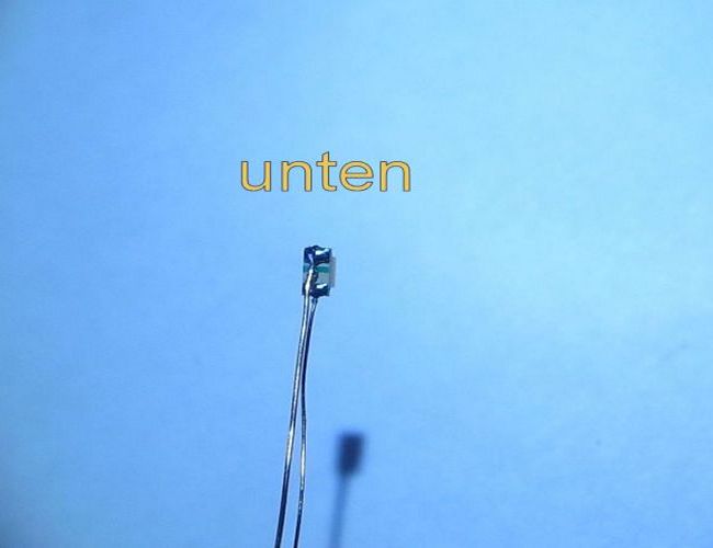 SMD LED Golden White® von YolDal10 SMD LEDs 10,00 € 20 SMD LEDs 19,00 € 50 SMD LEDs 45,00 € andere Mengen auf Anfrage Beschreibung: - Farbeindruck: ähnlich dem Licht einer Glühlampe, seit Jahren und immer noch die beste LED für Loklaternen - Bauform: SMD 0603, l x b x h = 1,6 x 0,8 x 0,8 mm - Vorwärtsspannung = 3,2Vmax , Sperrspannung = 5 V ! - Helligkeit typ.300mcd - Strom max. = 20 mA (als Loklaterne reicht ca. 1 mA ) - Anode (+) ist durch den Querstrich auf der Rückseite gekennzeichnet - Betrieb nur mit Vorwiderstand oder Konstantstromquelle K2 (ohne Vorwiderstand) Für Bastler, die sich noch nicht trauen diese kleinen Teile direkt zu löten: SMD LED Golden White® von YolDal bedrahtet - mit ca. 10 cm langen Cul-Drähten Ø 0,15/0,1 mm - Natürlich können Sie bei der Bestellung angeben, ob die Drähte seitlich, nach unten oder nach hintern weggeführt werden sollen. Wichtige Information: Betrieb auf einer Modellbahnanlage sollte nur über Vorwiderstand am Digitaldekoder oder mit den Konstantstromquellen K2, K3 oder KS erfolgen! Unzureichende Motorentstörung kann diese LEDs zerstören! Bezug und Information: - Bestellung auf www.MoBa-Licht.de - Datenblatt(http://www.yoldal.com) |